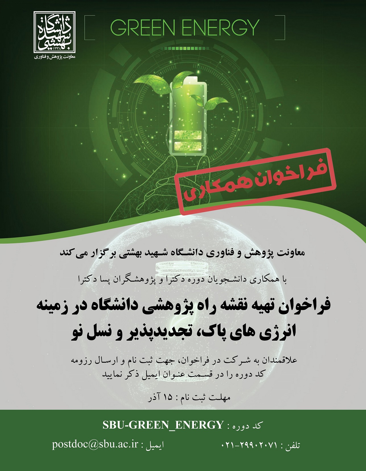ایمیل: postdoc@sbu.ac.ir